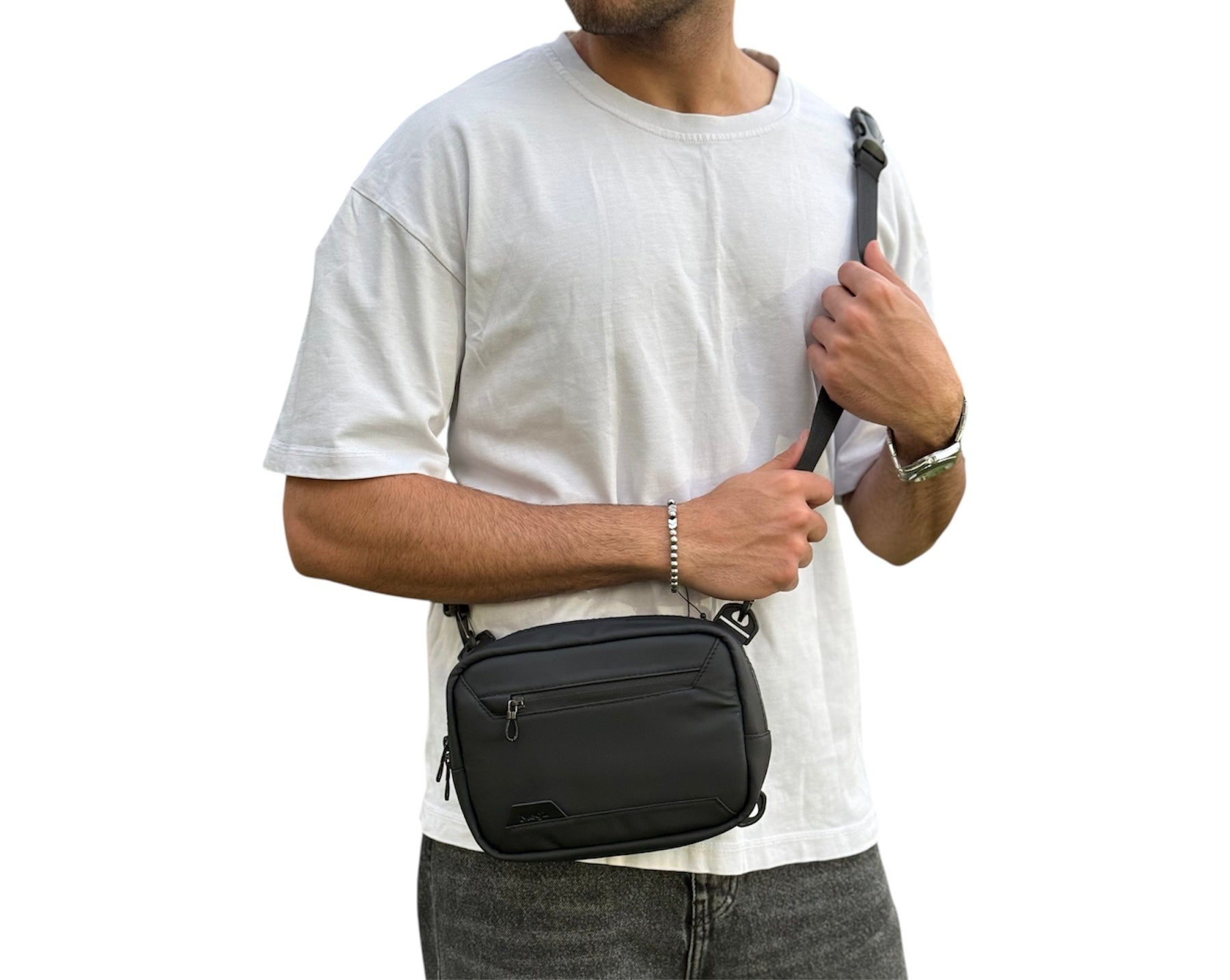 تقدر تلبسها كروس بالطول، كروس بالعرض، شنطة شيست، أو تمسكها بالإيد كـ Hand Pouch.