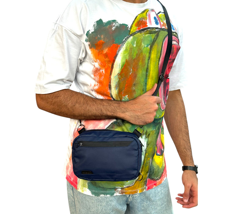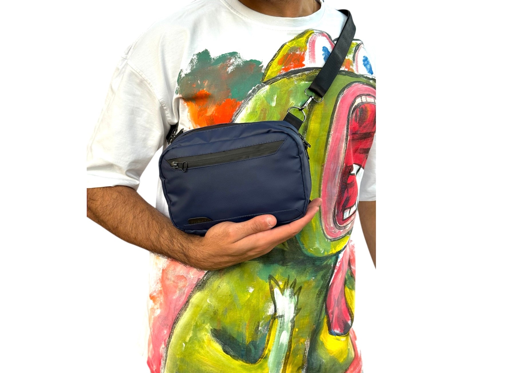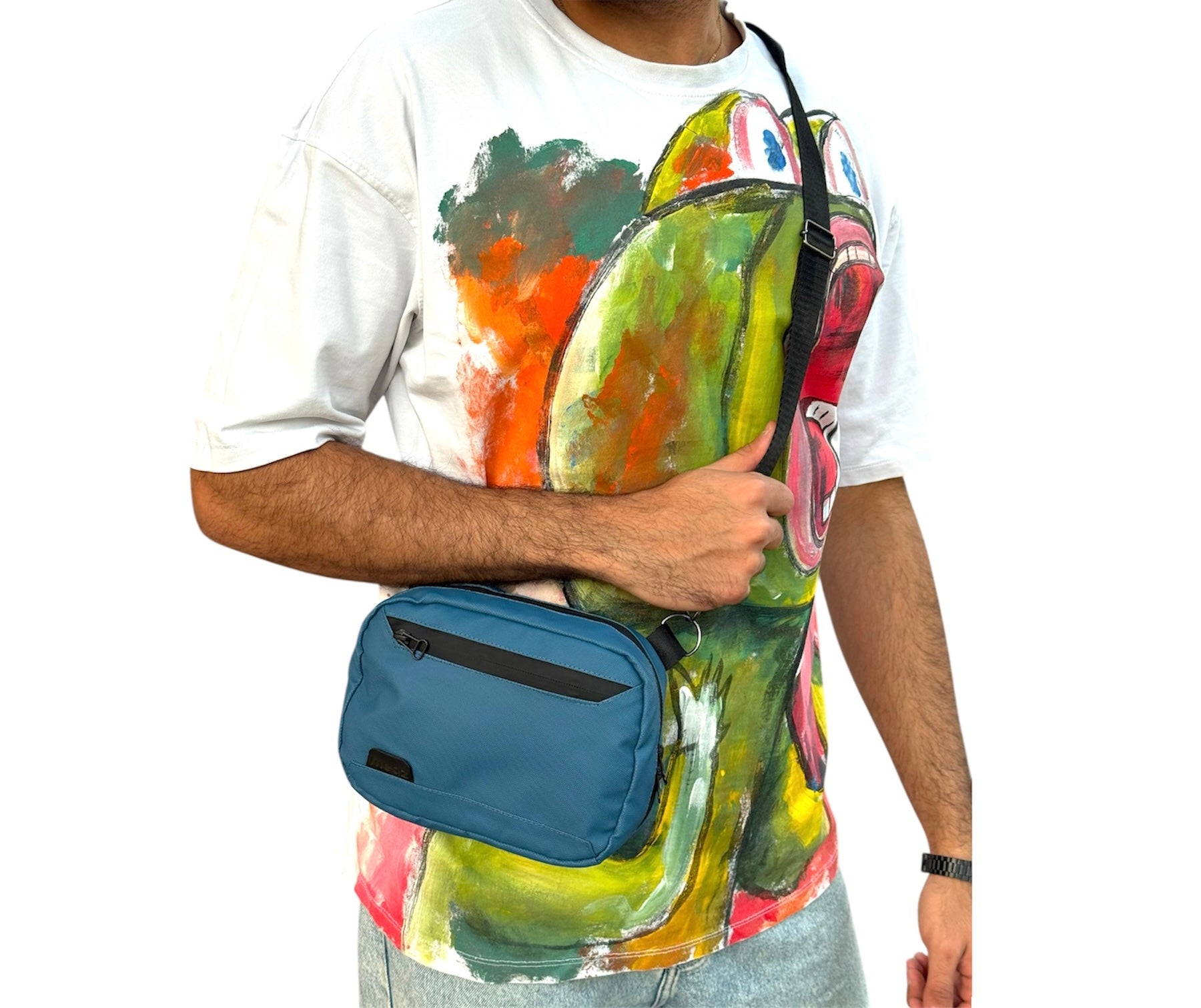 شنطة كروس صغيرة وعملية بتصميم خفيف ومريح، خامة ضد المياه، تقسيمات متعددة، وحزام قابل للتعديل للّبس بأكتر من طريقة.
